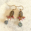 Indulge in the sophisticated harmony of deep smoky tones and muted pinks. These handcrafted chandelier earrings feature a stunning smoky quartz center, delicately framed by hand-woven wire and accented with natural stones like rhodonite and labradorite.