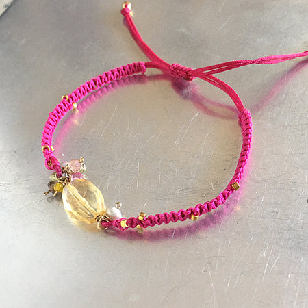 Sold Out Quick Shop lulujeweldesign Citrine Nugget with Fuchsia Pink Nylon Cord Knotted Bracelet $40.00