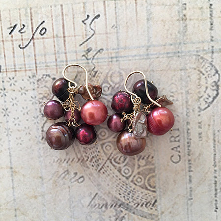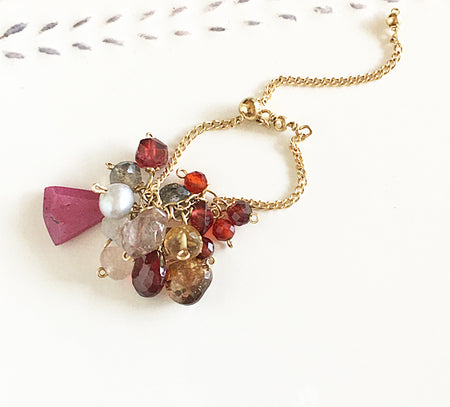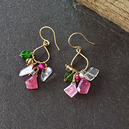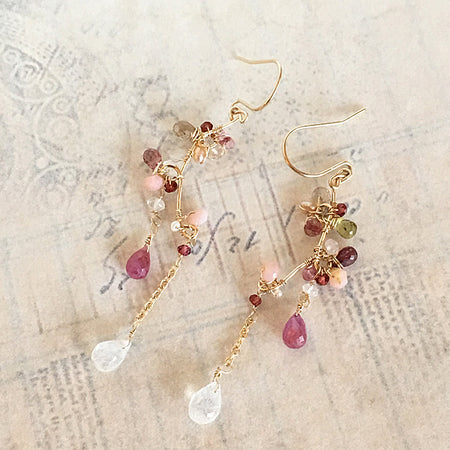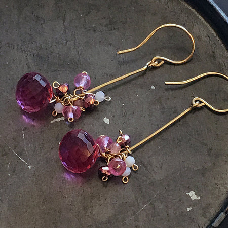 Quick Shop lulujeweldesign Gold filled Bar Earrings - Fuchsia Pink Quartz and Pink Gemstones - 14KGF $48.00