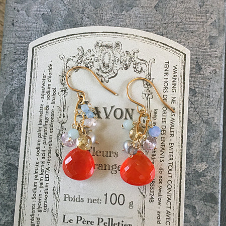 Sold Out Quick Shop lulujeweldesign Bright Orange Carnelian with Lavender and Blue Gemstone Chain Earrings - 14KGF $52.00