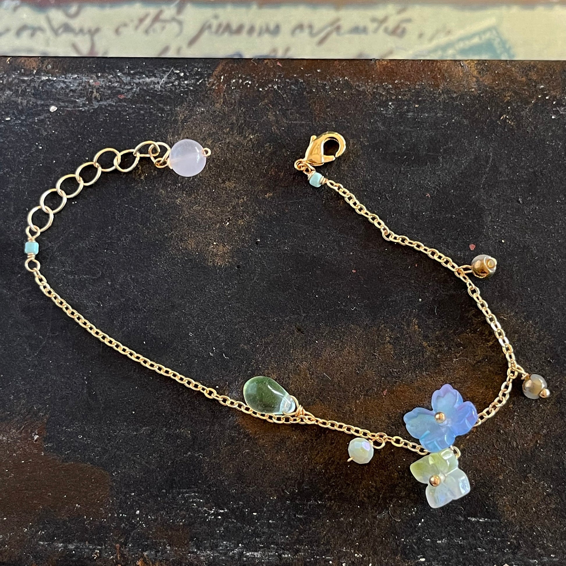 Verdant Mist Blossom: Blue & Green Hydrangea Bracelet