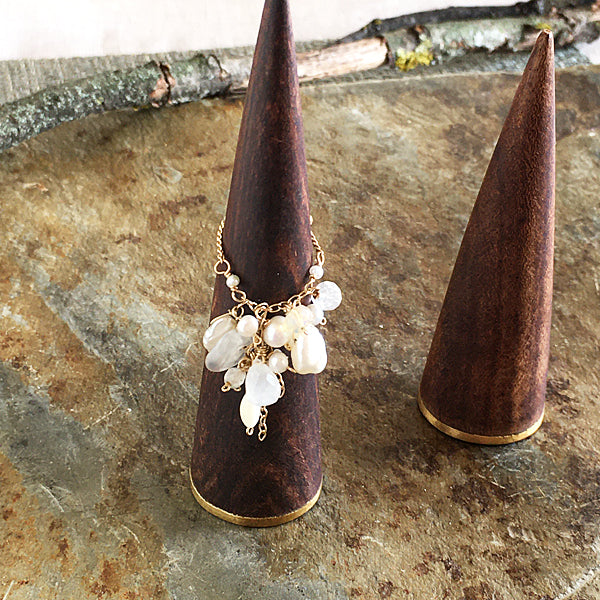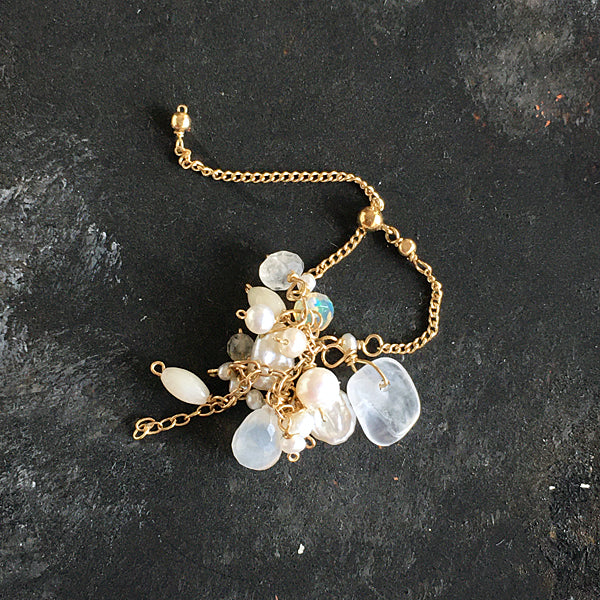 Slide Ball Chain Ring with Moonstone, Pearls and Ethiopian Opal - 14KGF