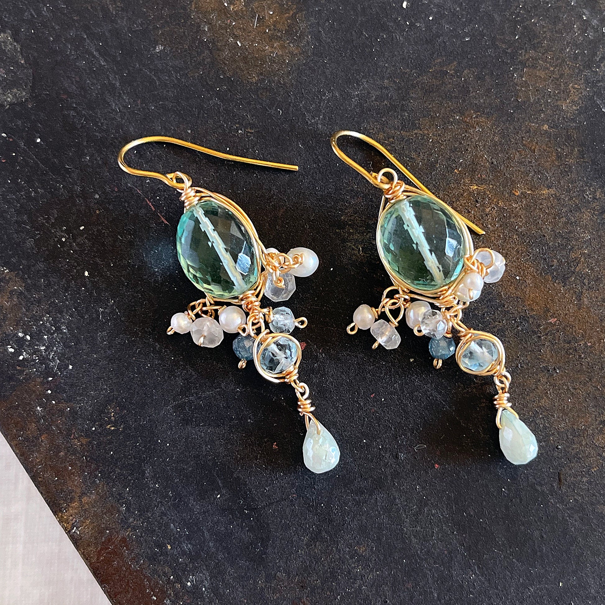 Gemstone Chandelier Earrings - "Morning Dew Chandelier" #2