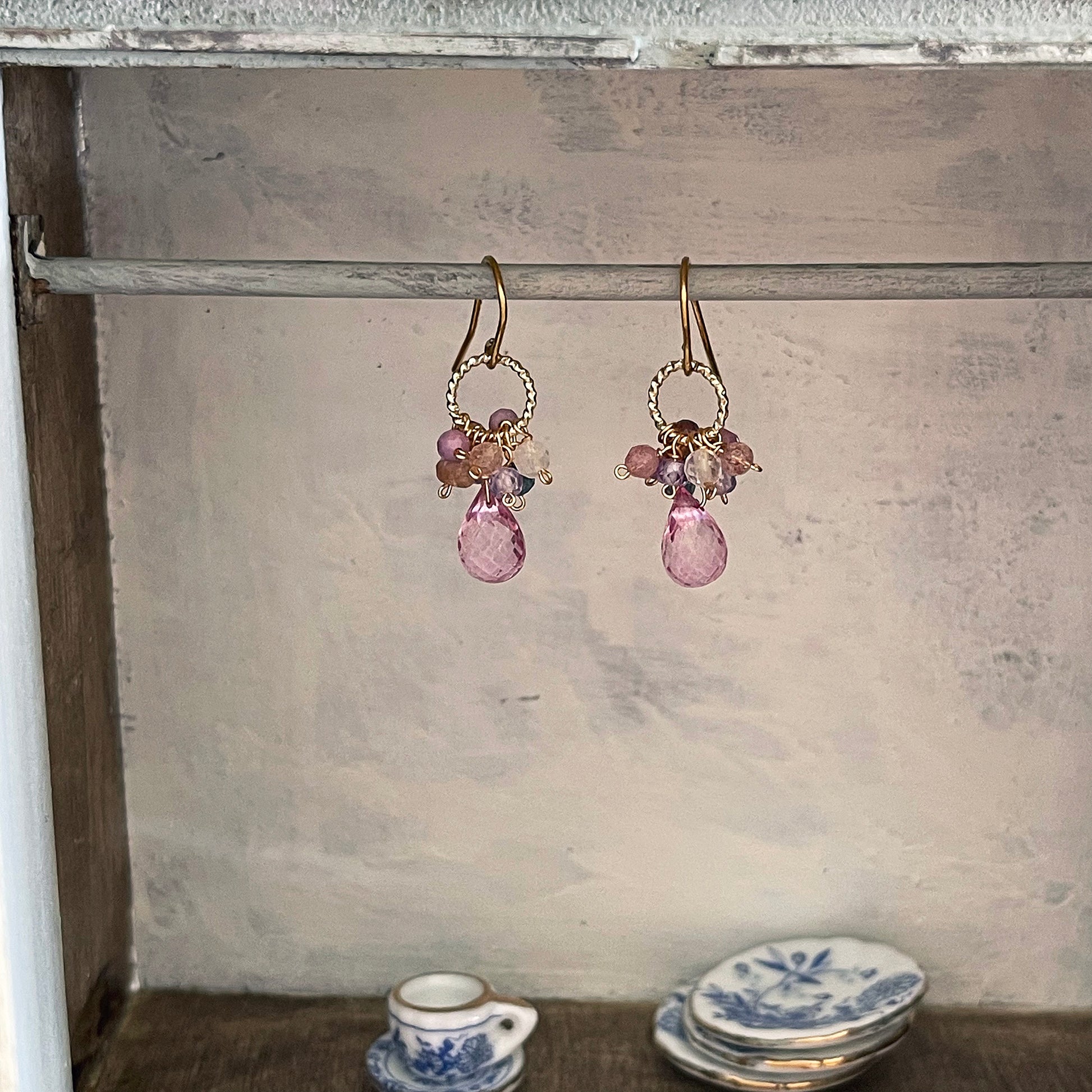 Radiant Bloom:Pink Topaz Glint Earrings
